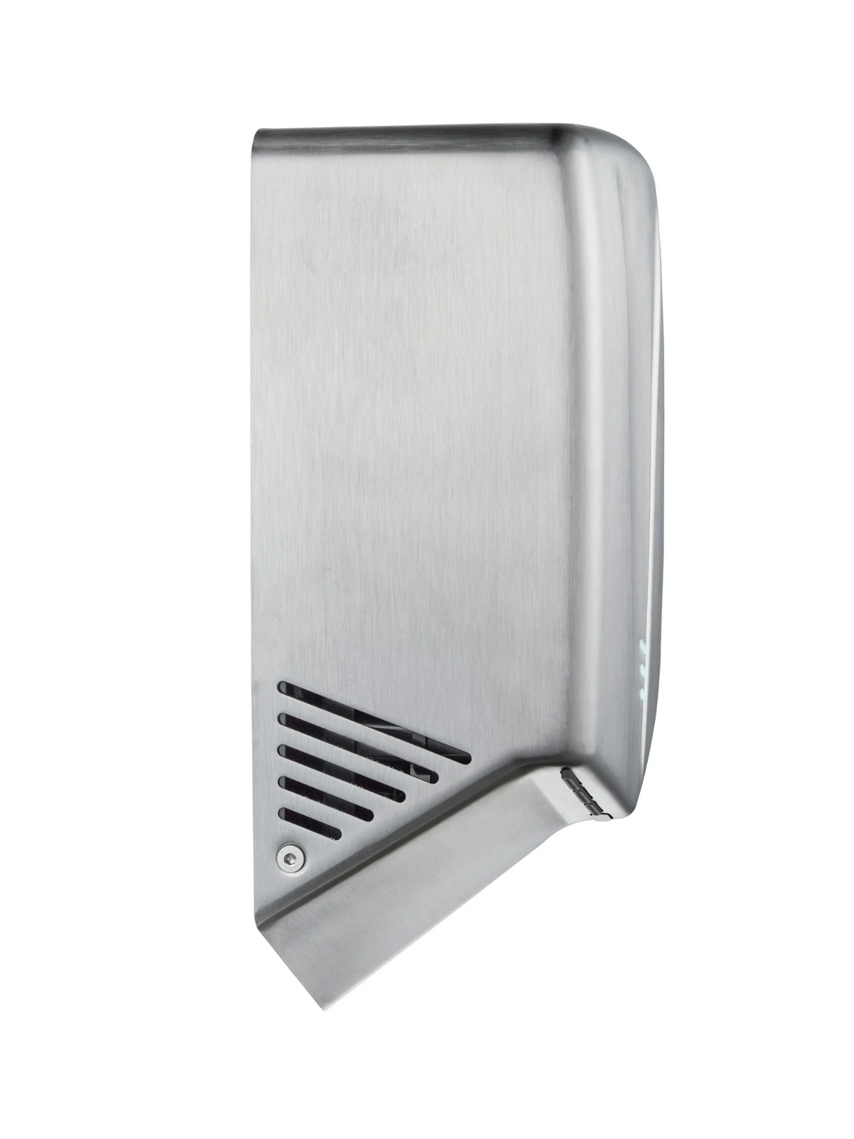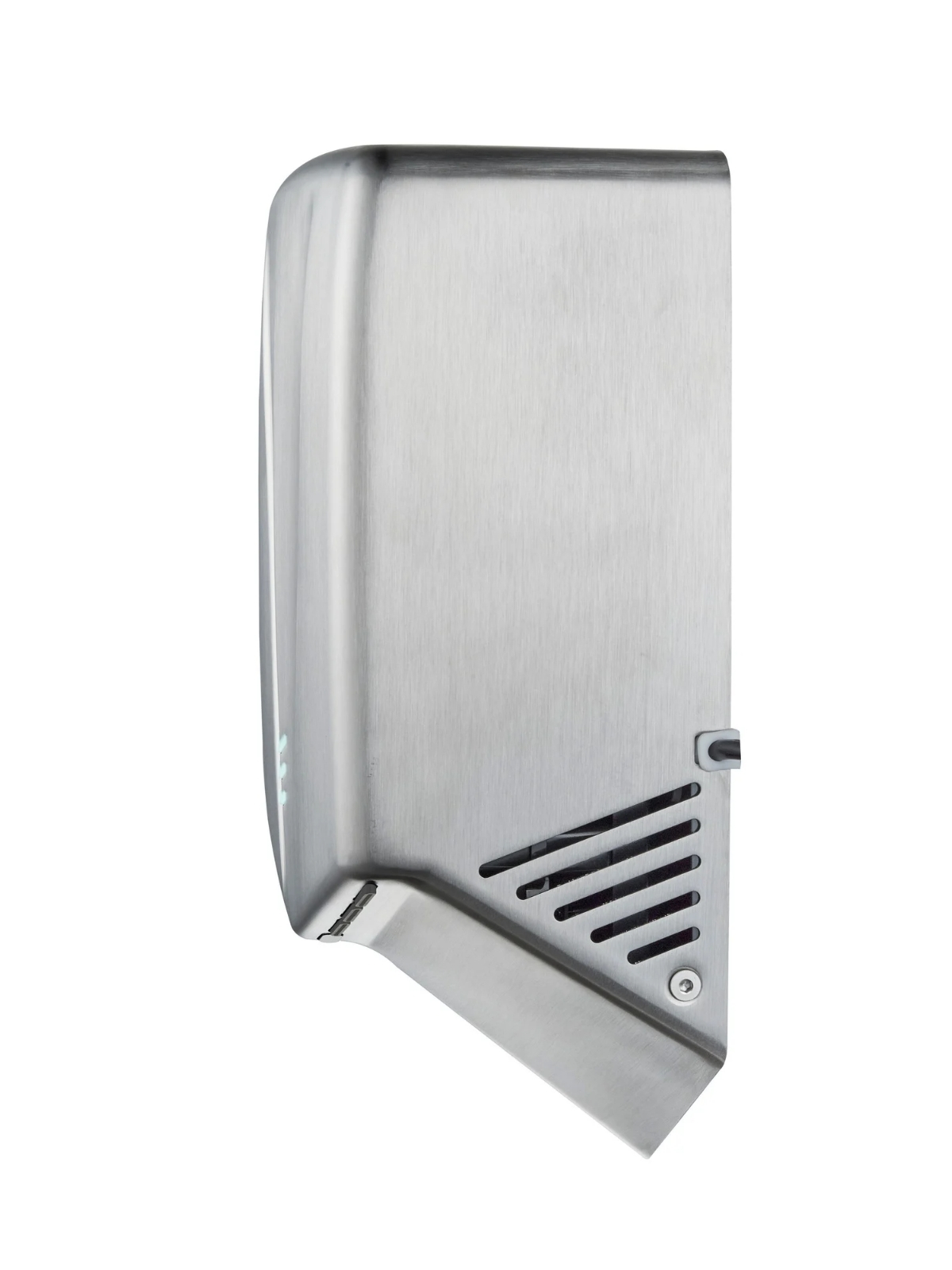 Элегантность: Дизайн сушилки выполнен в элегантном стиле. Воздуховодные отверстия размещены по корпусу под специальным углом, рассчитанным для комфортного расположения рук при их сушке. Сушилка оснащена световыми LED-индикаторами, обеспечивающими визуальную индикацию работы.