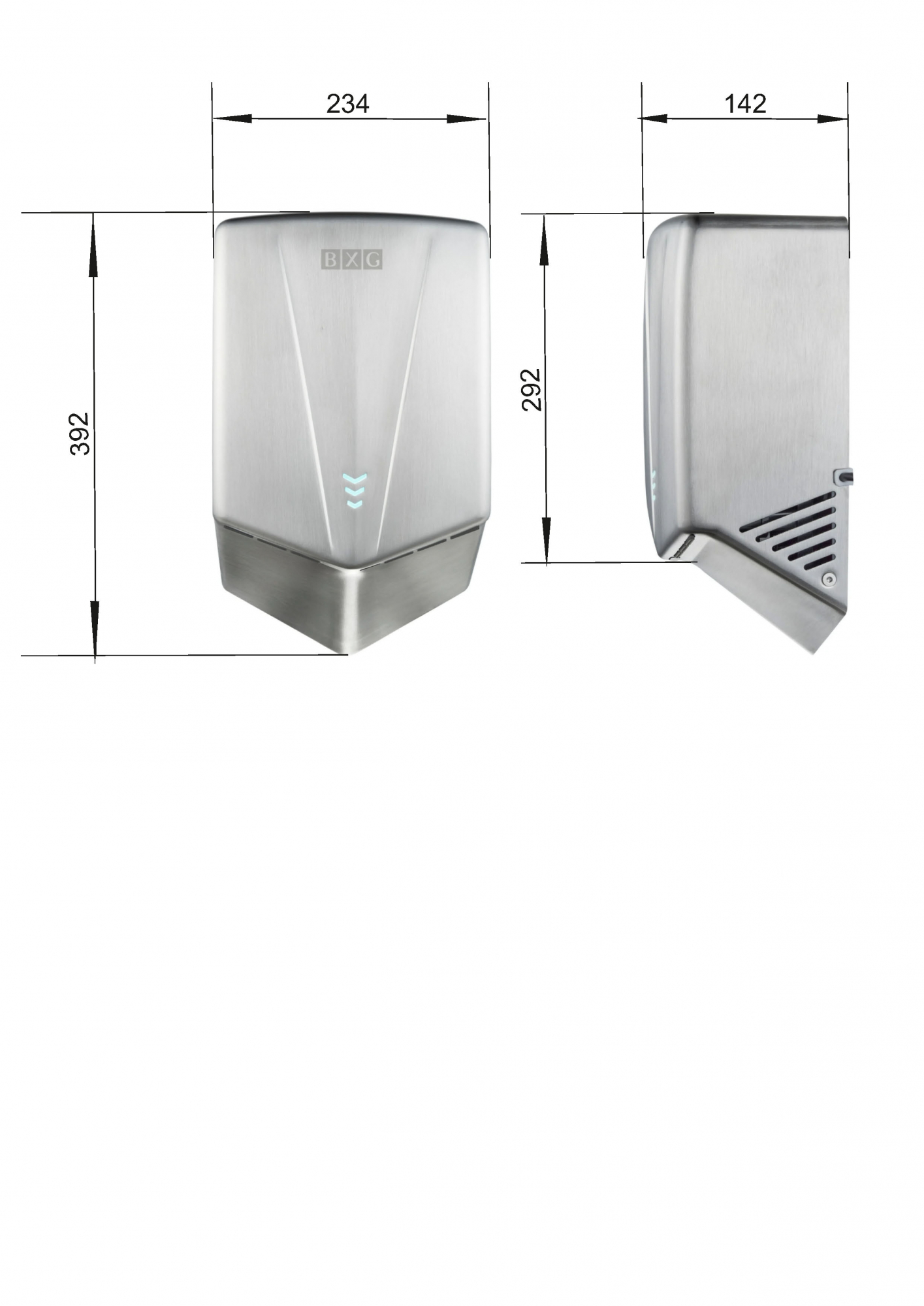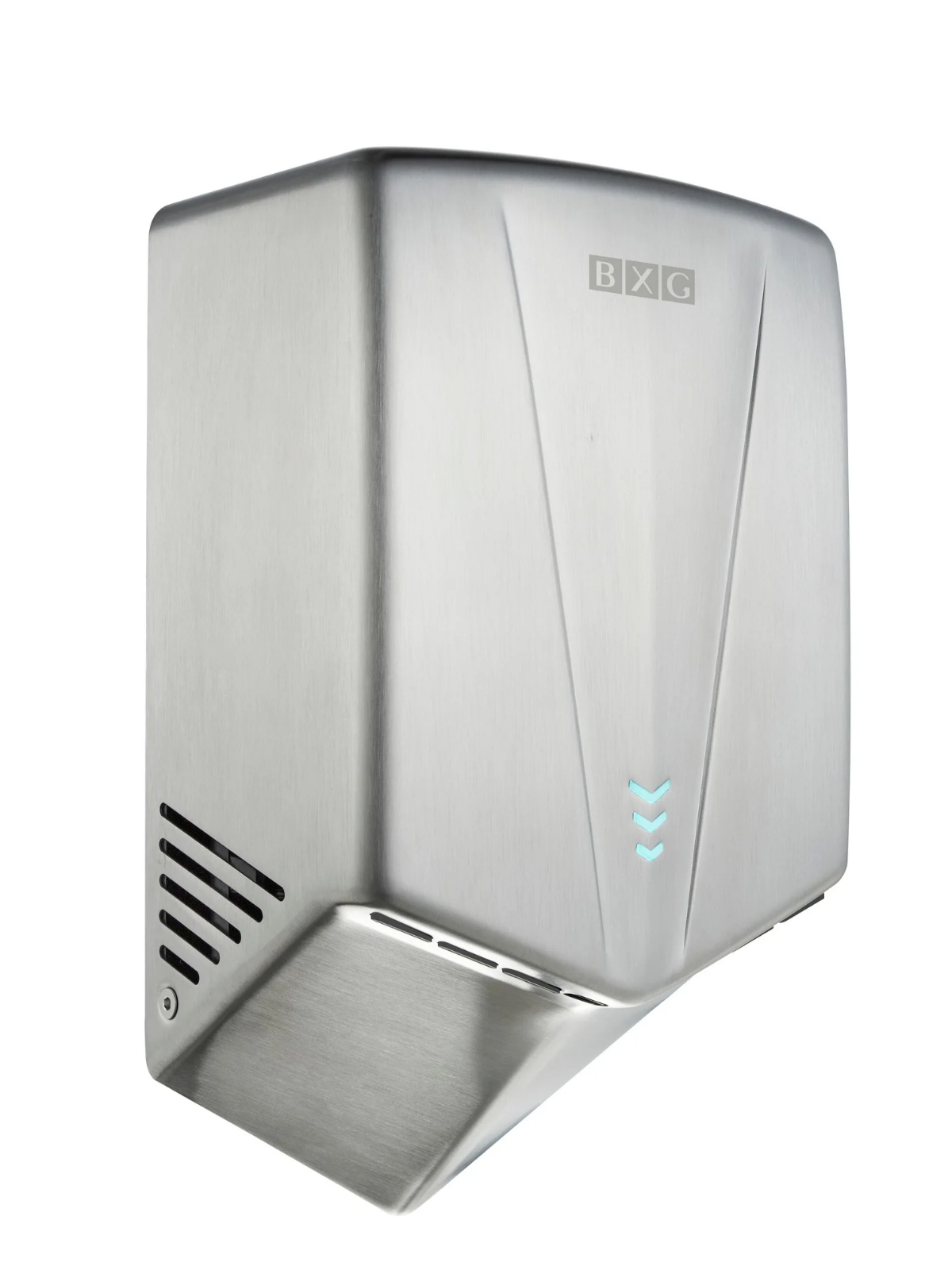 BXG-JET-5700A – Высокоскоростная электросушилка для рук нового поколения с функцией Ультрафиолетового обеззараживания. Сушилка выполнена из нержавеющей стали SS304 в цвете хром с матовым оттенком.