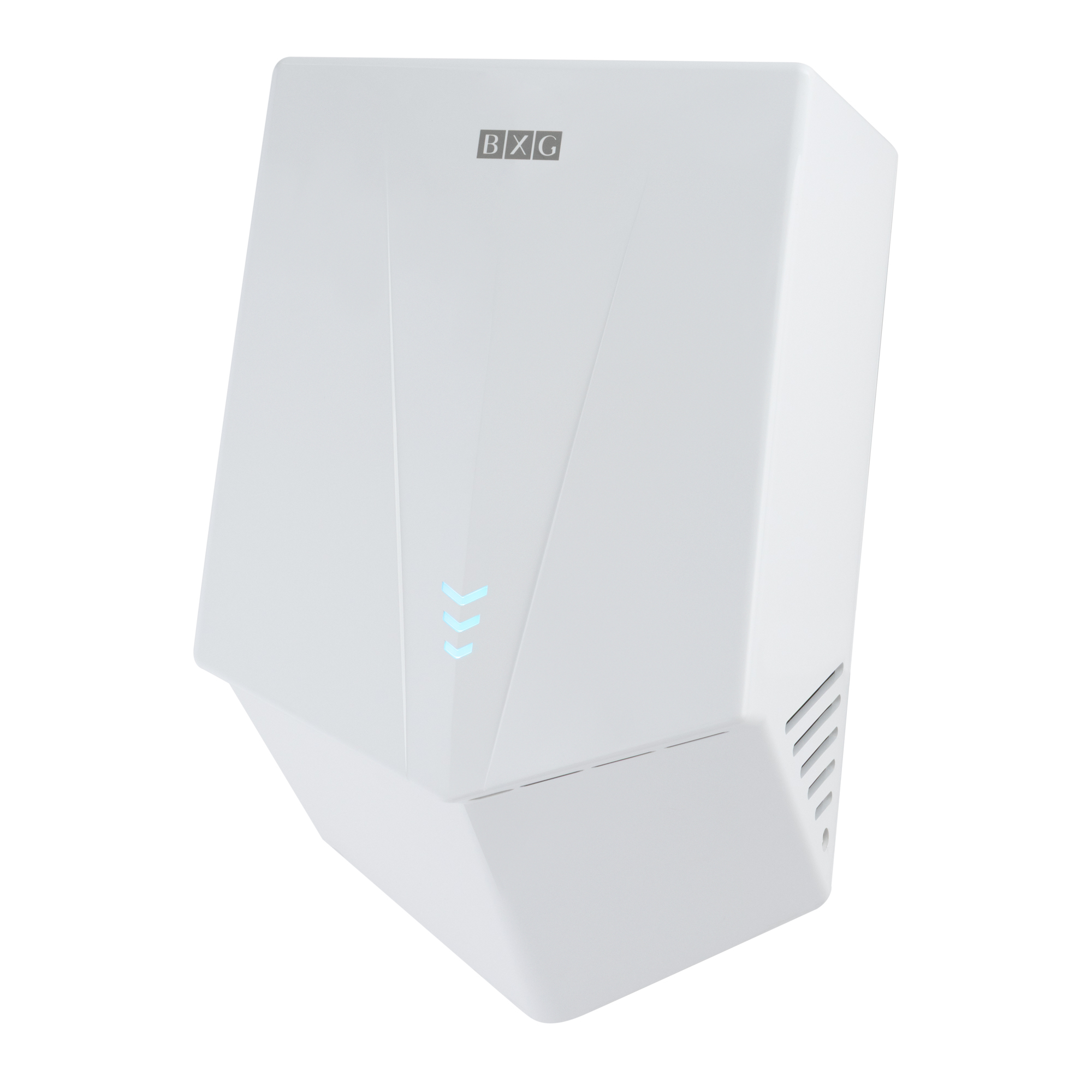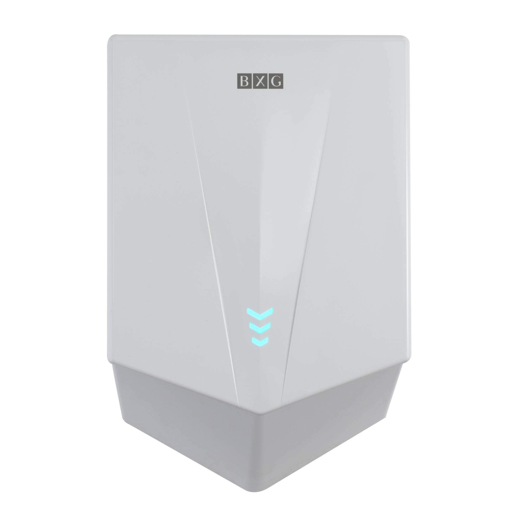 BXG-JET-5700 – Высокоскоростная электросушилка сушилка для рук нового поколения с функцией Ультрафиолетового обеззараживания. Сушилка выполнена из высокопрочного пластика ABS в благородном белом цвете.