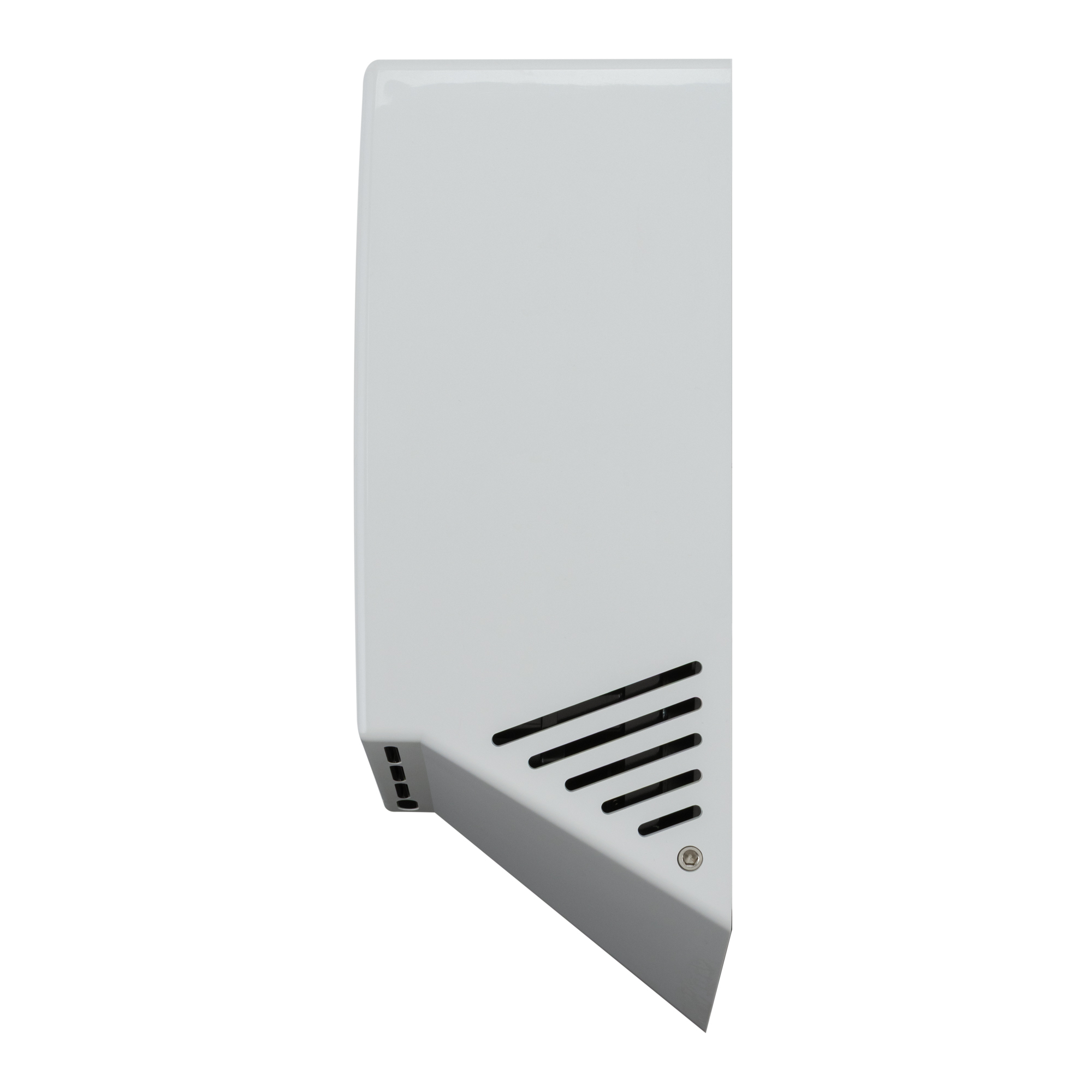 Дизайн сушилки выполнен в элегантном стиле. Воздуховодные отверстия размещены по корпусу под специальным углом, рассчитанным для комфортного расположения рук при их сушке. Сушилка оснащена световыми LED-индикаторами, обеспечивающими визуальную индикацию работы.