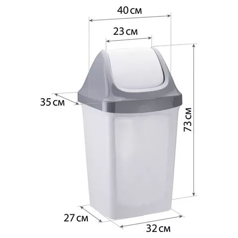 Главная Каталог Сантехника Урны для мусора Урны механические 50 литров Ведро-контейнер 50 л, с крышкой (качающейся), для мусора, "Свинг", 74х40х35 см, серое, IDEA, М2464