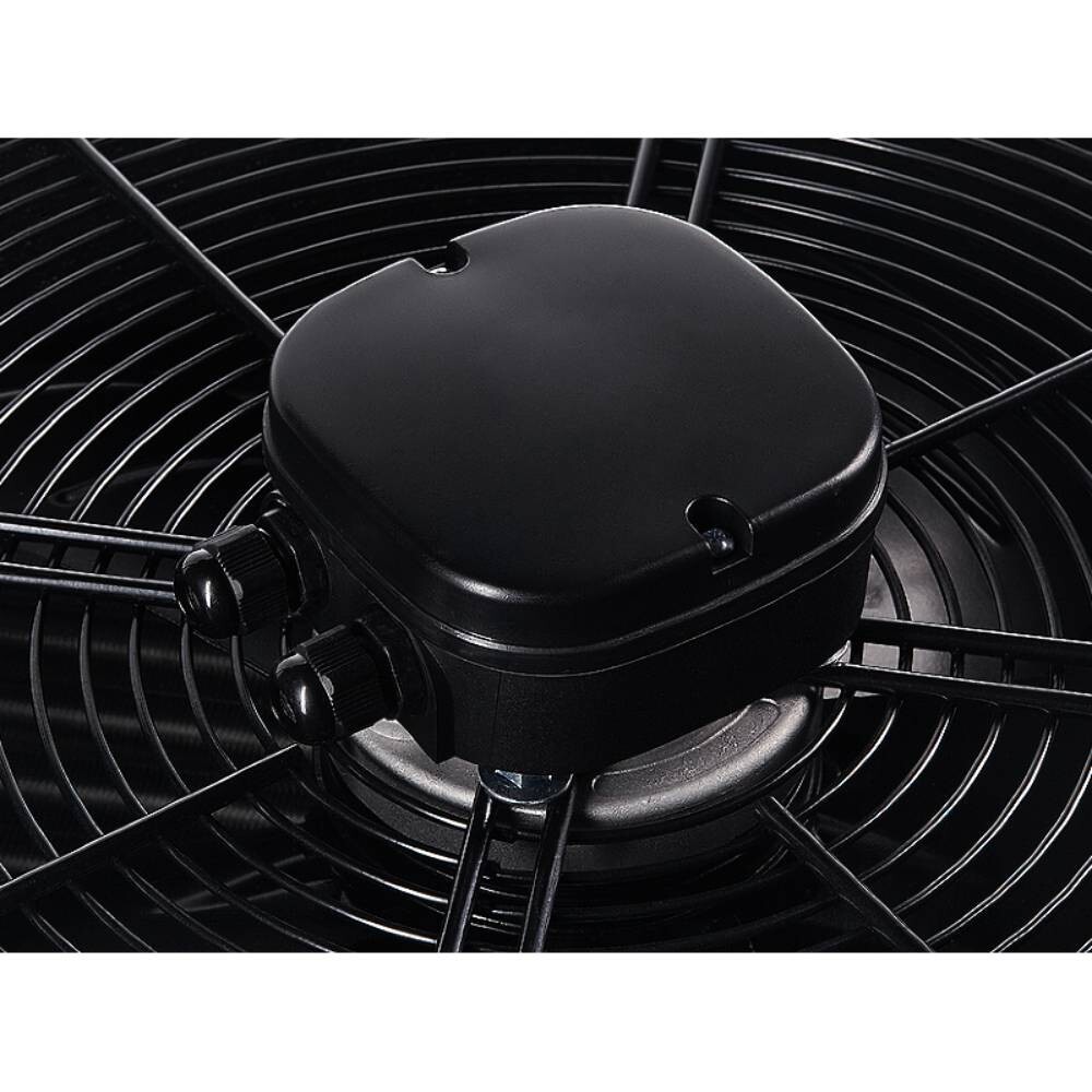 Осевой вентилятор диаметром 400 мм. создает воздушный поток длиной 12 метров и обеспечивает максимальную производительность до 2400 м3/ч.