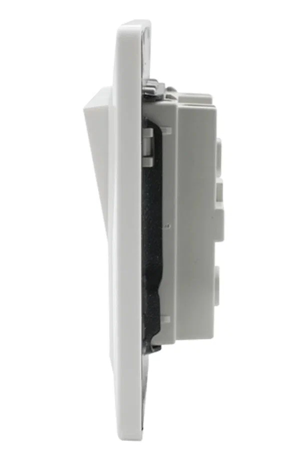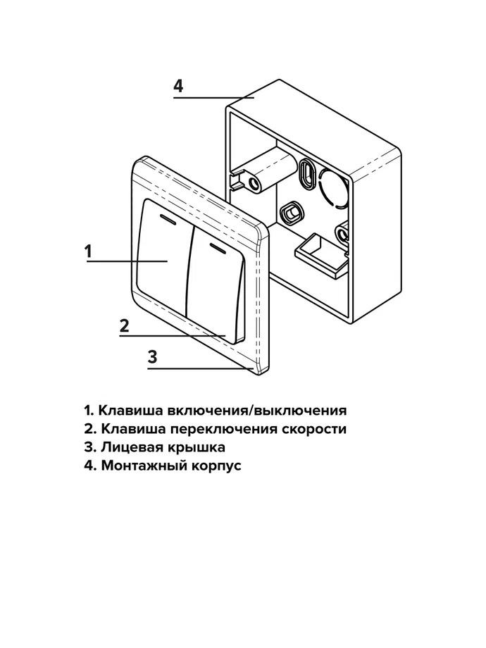 Переключатель состоит из рамки, двух клавиш и клавишных механизмов, монтажного корпуса.