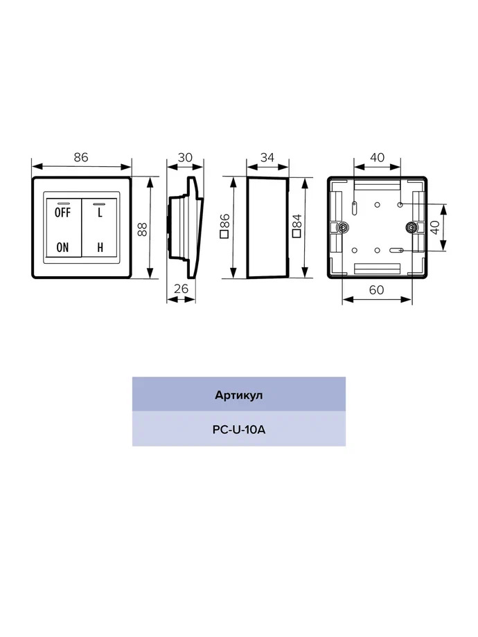 Включение/выключение двигателя вентилятора осуществляется с помощью клавиш — ON/OF, переключение скоростей — L/H, где L — минимальная скорость, H — максимальная скорость вентилятора.