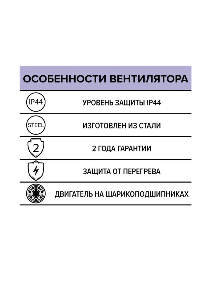 Коммерческий радиальный вентилятор, предназначенный для нагнетания воздуха, необходимого для работы промышленного оборудования. Корпус изготовлен из холоднокатаной стали и защищен от коррозии порошковой покраской. Крыльчатка выполнена из оцинкованной стали с загнутыми вперед лопатками. Вентиляторы оснащены мотор-колесом с внешним ротором. Входное отверстие защищено металлической сеткой от попадания посторонних предметов.