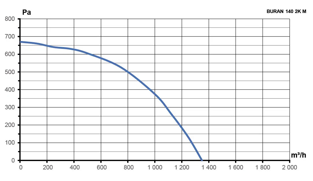 Коммерческий радиальный вентилятор, предназначенный для организации систем местной или общеобменной приточно-вытяжной вентиляции с развитой сетью воздуховодов. Корпус изготовлен из холоднокатаной стали и защищен от коррозии порошковой покраской. Крыльчатка выполнена из оцинкованной стали с загнутыми вперед лопатками. Входной фланец защищен металлической сеткой от попадания посторонних предметов. В вентиляторе BURAN 140 2K M L установлен двухполюсной двигатель, выходное отверстие находится слева относительно оси двигателя.
