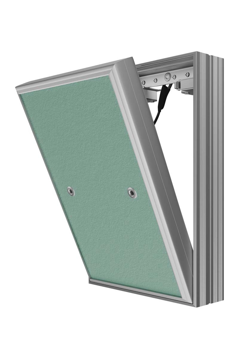 Люки ревизионные под плитку D Ceramo Base с фронтальным открытием дверцы предназначены для скрытого доступа и обслуживания инженерных, сантехнических, электрических и прочих коммуникаций. Люки устанавливаются в нишах стен и перегородок, изготовленных из кладочных (кирпич, бетон, пенобетон и др.) или листовых (гипсокартон и др.) материалов. Открываются и закрываются легким нажатием на дверцу, после закрытия надежно фиксируются в раме. Люки изготавливаются из алюминиевого профиля. Дверца заполнена влагостойким гипсокартоном (ГКЛВ). Конструкция оснащена нажимным замком, резиновым уплотнителем, страховочным механизмом для безопасного открытия дверцы, имеет возможность полного снятия дверцы. Максимальный угол открытия — 180 градусов.