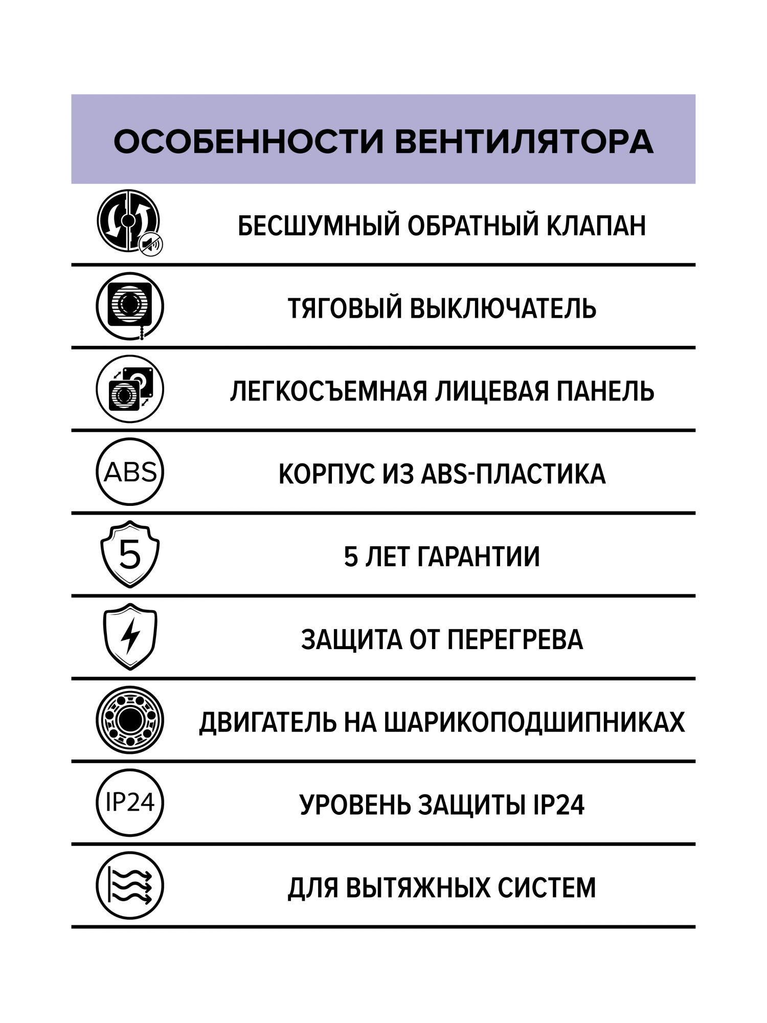 Вентилятор RIO применяется для постоянной или периодической вытяжной вентиляции санузлов, душевых, кухонь и других бытовых помещений. Подходит для монтажа в вентиляционные шахты и соединения с воздуховодами. Особенности вентилятора RIO: - гармоничный дизайн закрытой лицевой панели с плавными скругленными формами и центральным декоративным отверстием. Панель легко снимается, упрощая обслуживание вентилятора; - бесшумный обратный клапан с силиконовыми стопперами, - монтажный шаблон в комплекте для простой и удобной установки вентилятора, - тяговый выключатель для ручного включения/выключения вентилятора. Долговечный двигатель на шарикоподшипниках гарантирует до 40 000 часов непрерывной работы, предохранитель Termo fuse отключит вентилятор при нагреве обмотки свыше +130 °C. RIO можно установить как в стену, так и в потолок (при снятии обратного клапана), двигатель не требует дополнительного обслуживания. Корпус и панель выполнены из высококачественного и прочного ABS-пластика, который надежно прослужит весь срок использования и не пожелтеет. Монтаж осуществляется с помощью саморезов, которые входят в комплект. Уровень защиты – IP24. Гарантийный срок 5 лет.