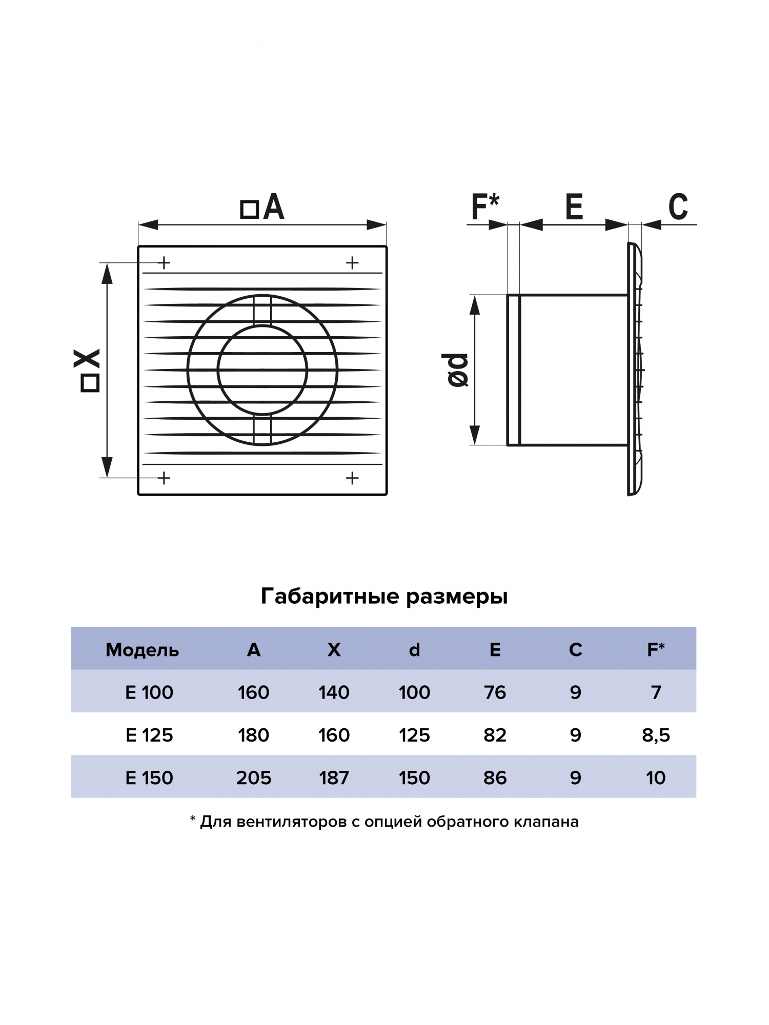 • Защита от пыли и влаги – Е имеет стандартный для бытовых вентиляторов уровень пылевлагозащиты IP24.
