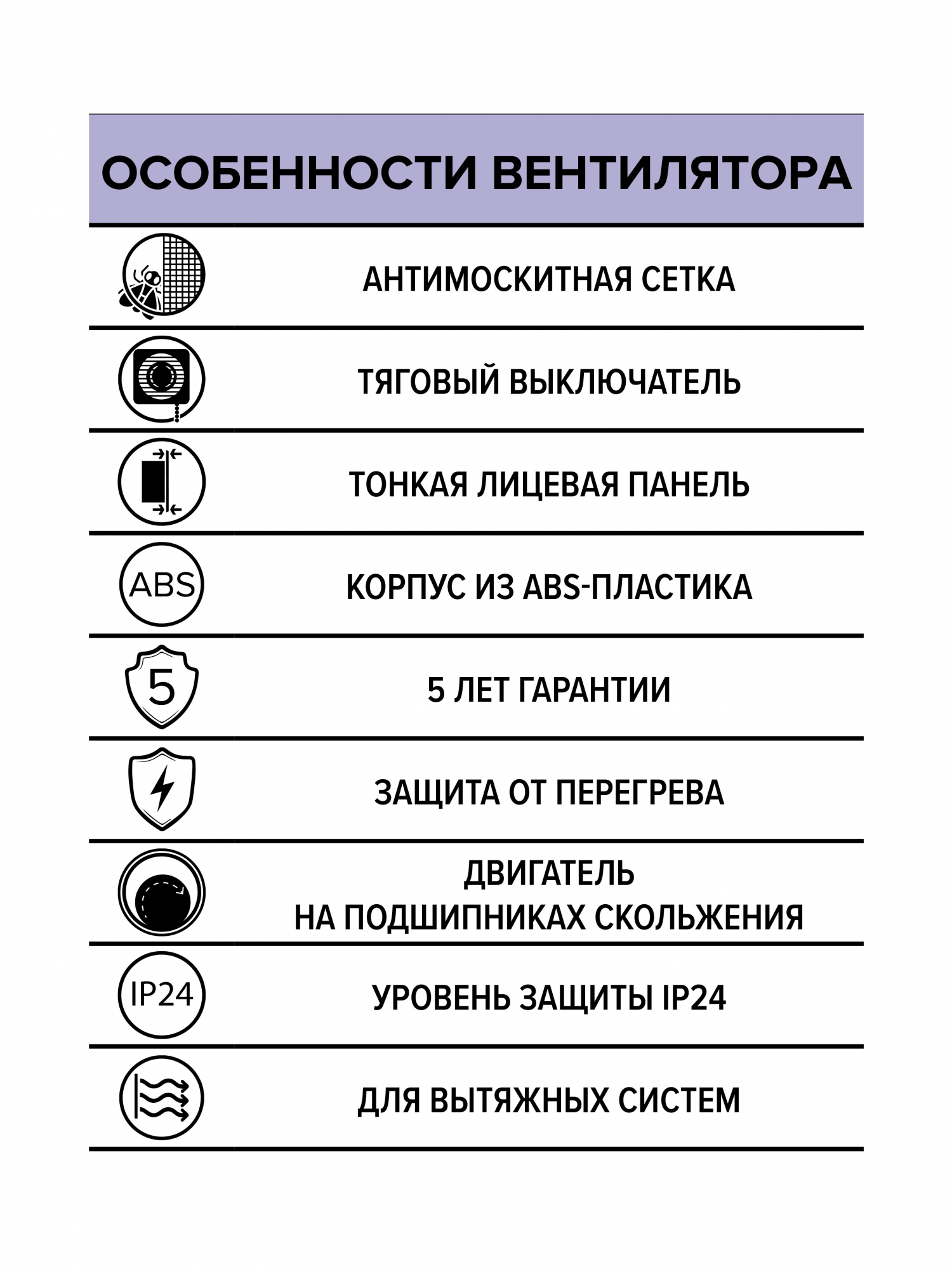 • Защита от пыли и влаги – Е имеет стандартный для бытовых вентиляторов уровень пылевлагозащиты IP24.