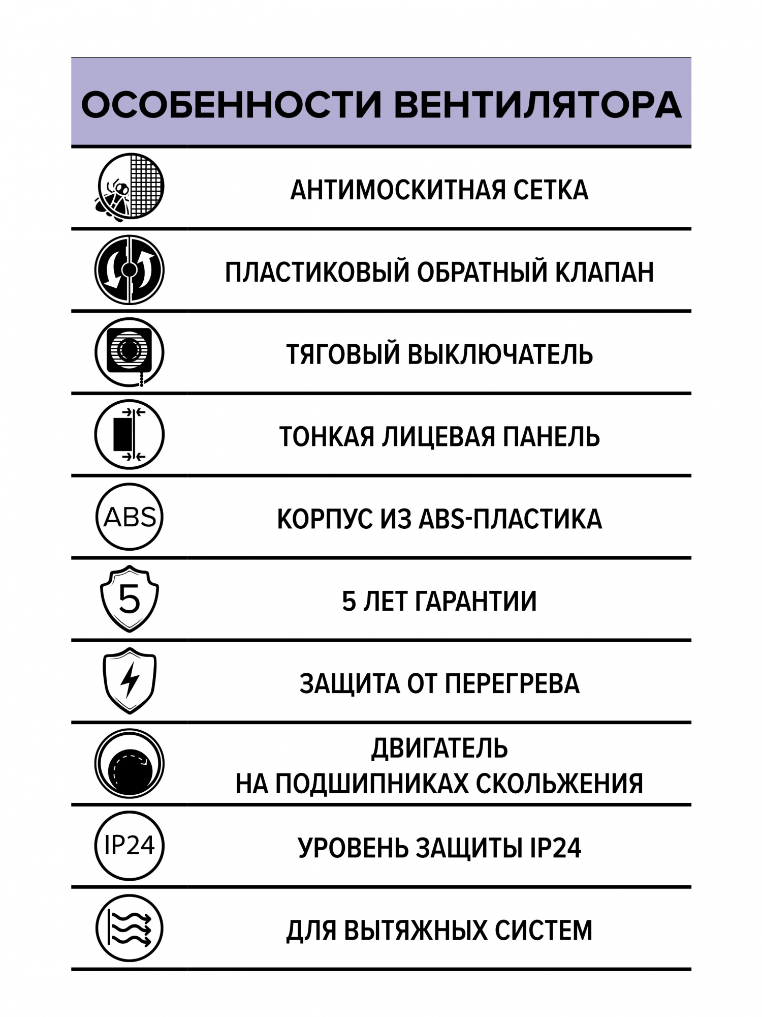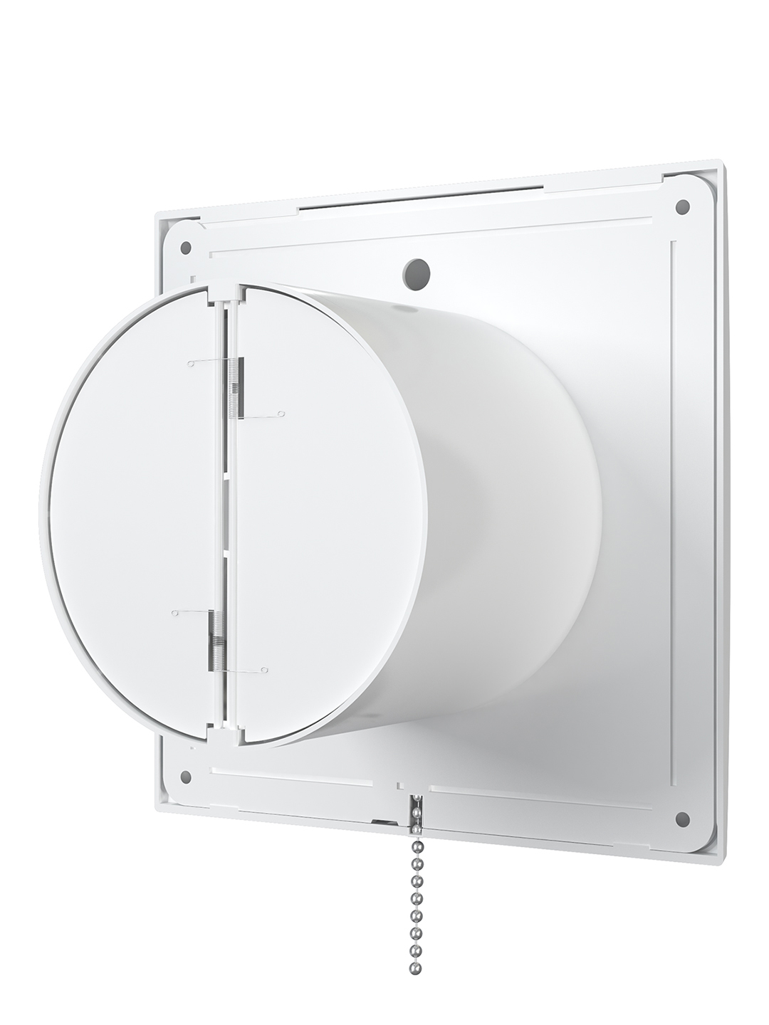 Модель оснащена обратным клапаном, который устанавливается на фланец и защищает помещение от обратной тяги и проникновения из вентиляционного канала неприятных запахов.