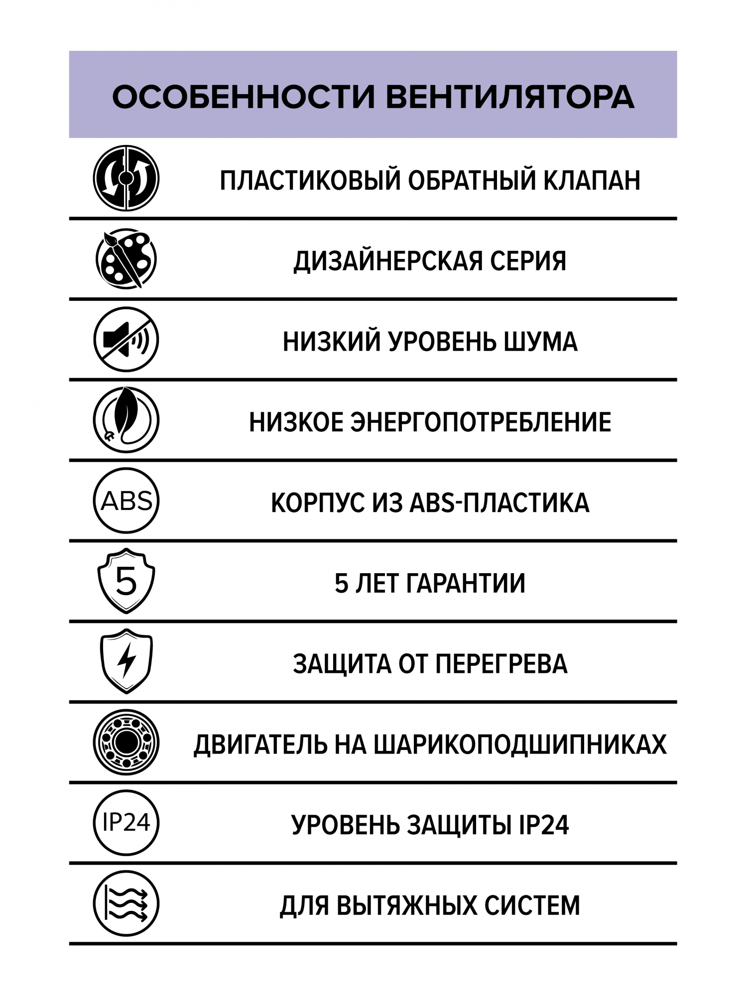 Долговечный двигатель на шарикоподшипниках не требует дополнительного обслуживания и гарантирует до 40 000 часов непрерывной работы, оснащен предохранителем Termo fuse, который отключит вентилятор при нагреве обмотки свыше +130 °C. SILENT можно установить как в стену, так и в потолок (при снятии обратного клапана).