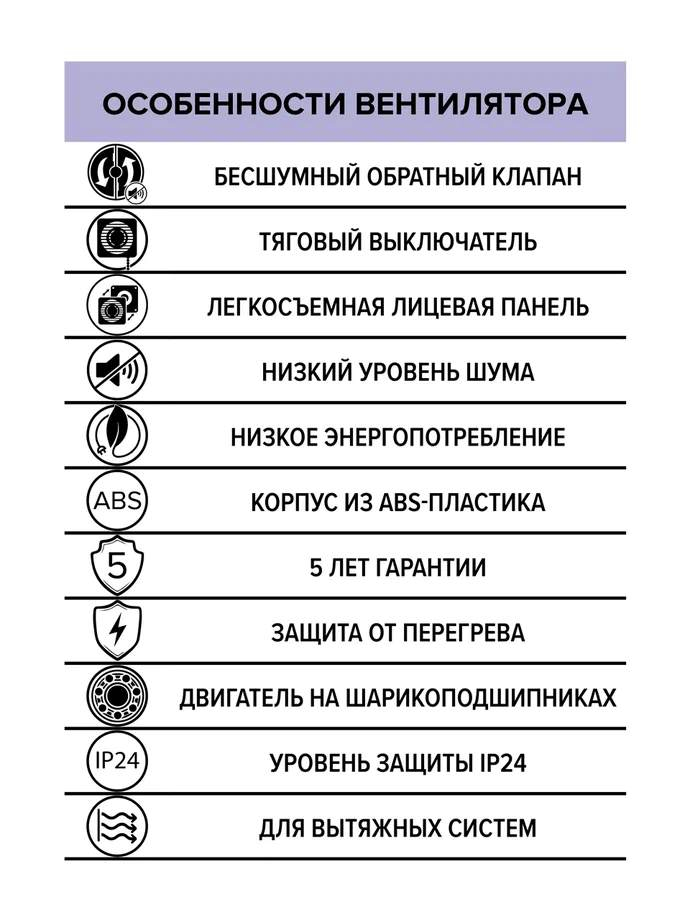 Вентилятор Era Breeze 4C-02 с выключателем представляет собой вытяжной вентилятор для удаления воздуха из туалета, ванной или кухни. Данная серия оборудована малошумным обратным клапаном и двигателем на шарикоподшипниках.