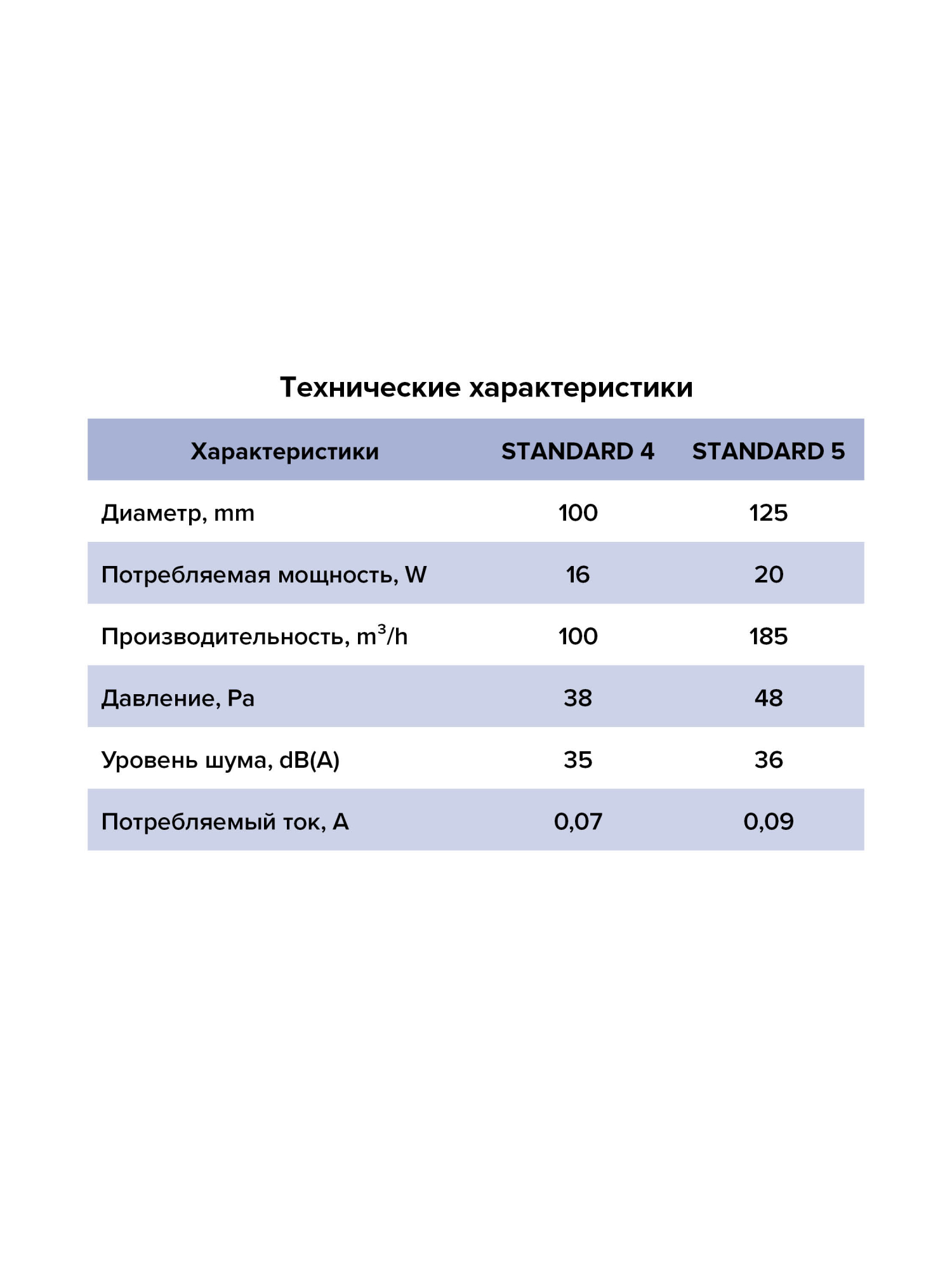 Общие особенности всех вентиляторов STANDARD: