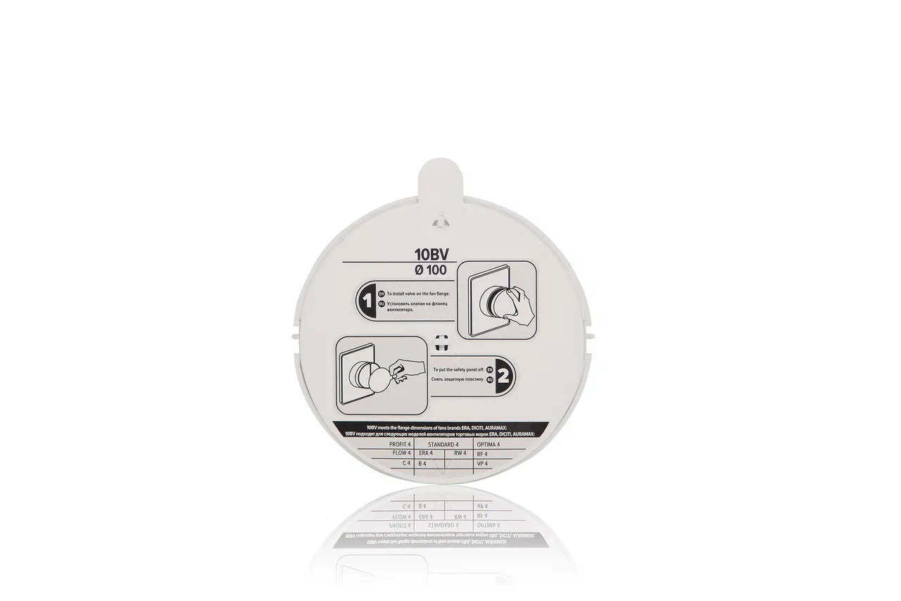 Обратный клапан BV предназначен для защиты от обратной тяги. Створки выполнены из полиэстеровой пленки, а каркас — из ABS-пластика.