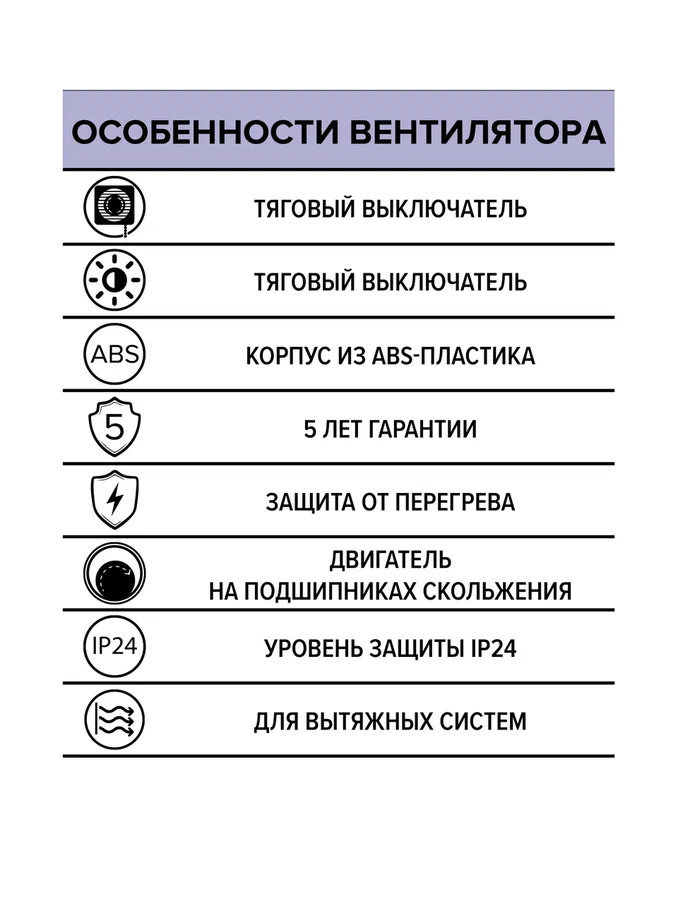 Лицевая панель, корпус и крыльчатка изготовлены из ABS-пластика;